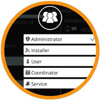 Coordinator: contact can view settings, edit their own details, temporarily disable alarms (up to a maximum of 12 hours) and change and create contacts, call lists/service groups and duty rosters; |