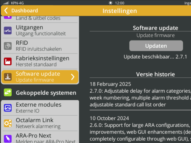 In de komende weken stellen we de nieuwe softwareversie 2.7.1 beschikbaar voor alle Octalarm alarmmelders. Deze update brengt diverse verbeteringen en nieuwe functies met zich mee. Belangrijke toevoegingen zijn onder andere de uitbreiding van het aantal rollen met verschillende bevoegdheden voor contactpersonen, en de mogelijkheid om vier externe I/O-modules te koppelen.