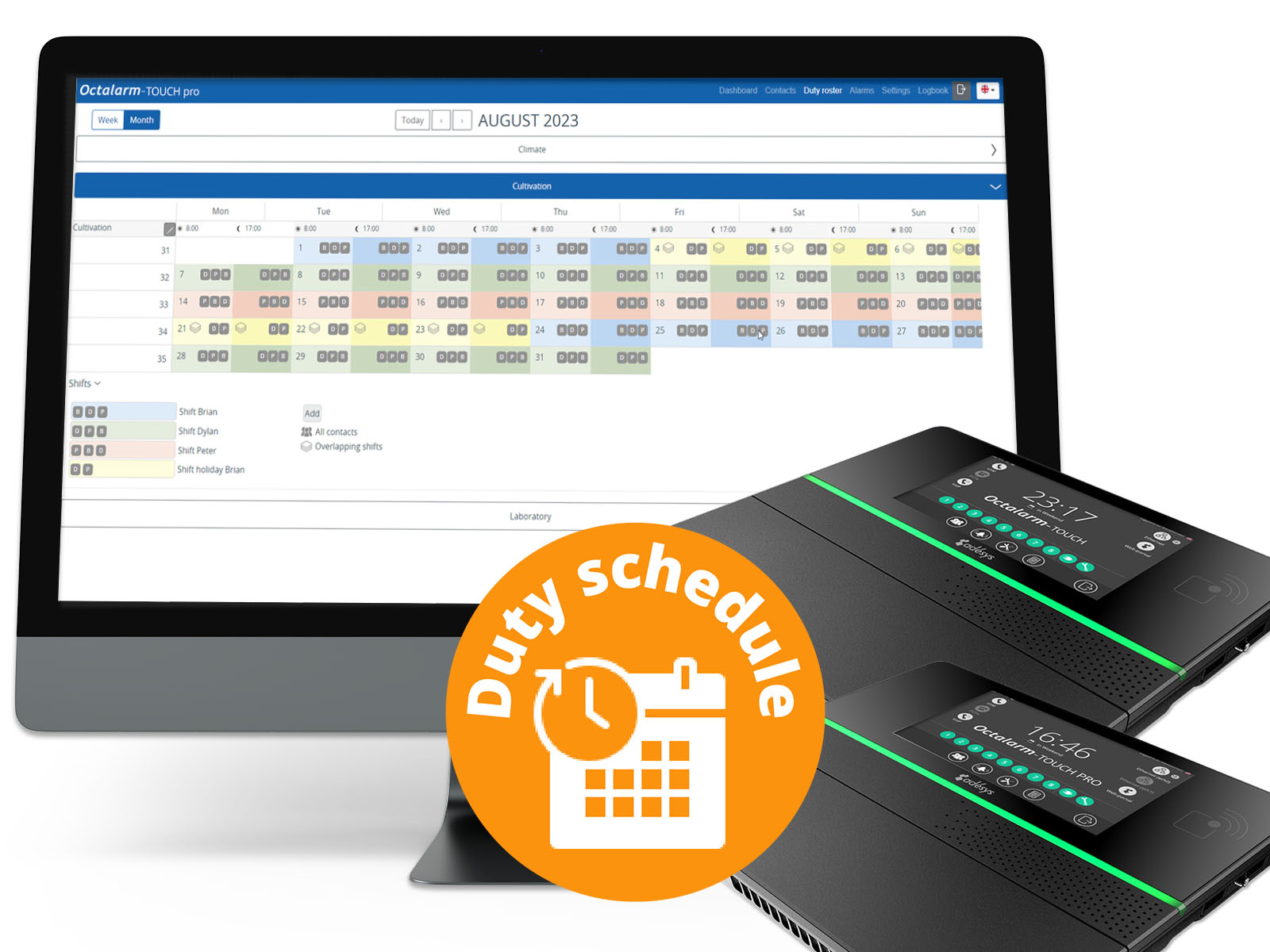 Do you change your call lists in the Octalarm alarm dialler every week? Or do you link a different call list to your alarm input each time? Is 1 weekly schedule not enough for monitoring your alarms? Or would you like more flexibility for scheduling your service technicians in case of alarms? The duty schedule module for Octalarm alarm dialler(s) offers the solution!